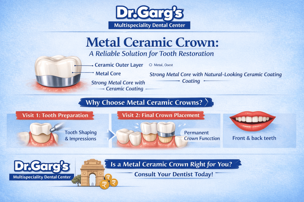 When it comes to restoring damaged or weakened teeth, one option stands out for both strength and aesthetics, the metal ceramic crown. In this blog, we will explain what metal ceramic crowns are, why they are widely used, their benefits, the treatment process, aftercare tips, cost in Delhi, and who is a good candidate. If you are looking for a durable, long-lasting tooth restoration solution, this guide is for you.